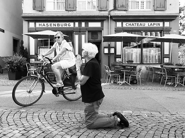 Viele von Gadligers Fotografien entstehen in Städten. Das Stadtleben fesselt schon den jungen Fotografen. Ob in Basel oder Buenos Aires, Riehen oder Rijeka, Zürich oder Zadar, meist sind es kleine Szenen am Strassenrand, Skurrilitäten des Alltags, zufällige Begegnungen unterwegs, denen sein Augenmerk gilt: Momentaufnahmen einer mitunter wunderlichen Gegenwart, die er mit der Kamera festhält. Er geht gerne dem scheinbar Unscheinbaren nach, dem Nebensächlichen. Im Alltäglichen wird er fündig. Im Sucher hat er zufällige Begegnungen und Strassenszenen, deren Witz sich oft erst auf den zweiten Blick erschliesst.